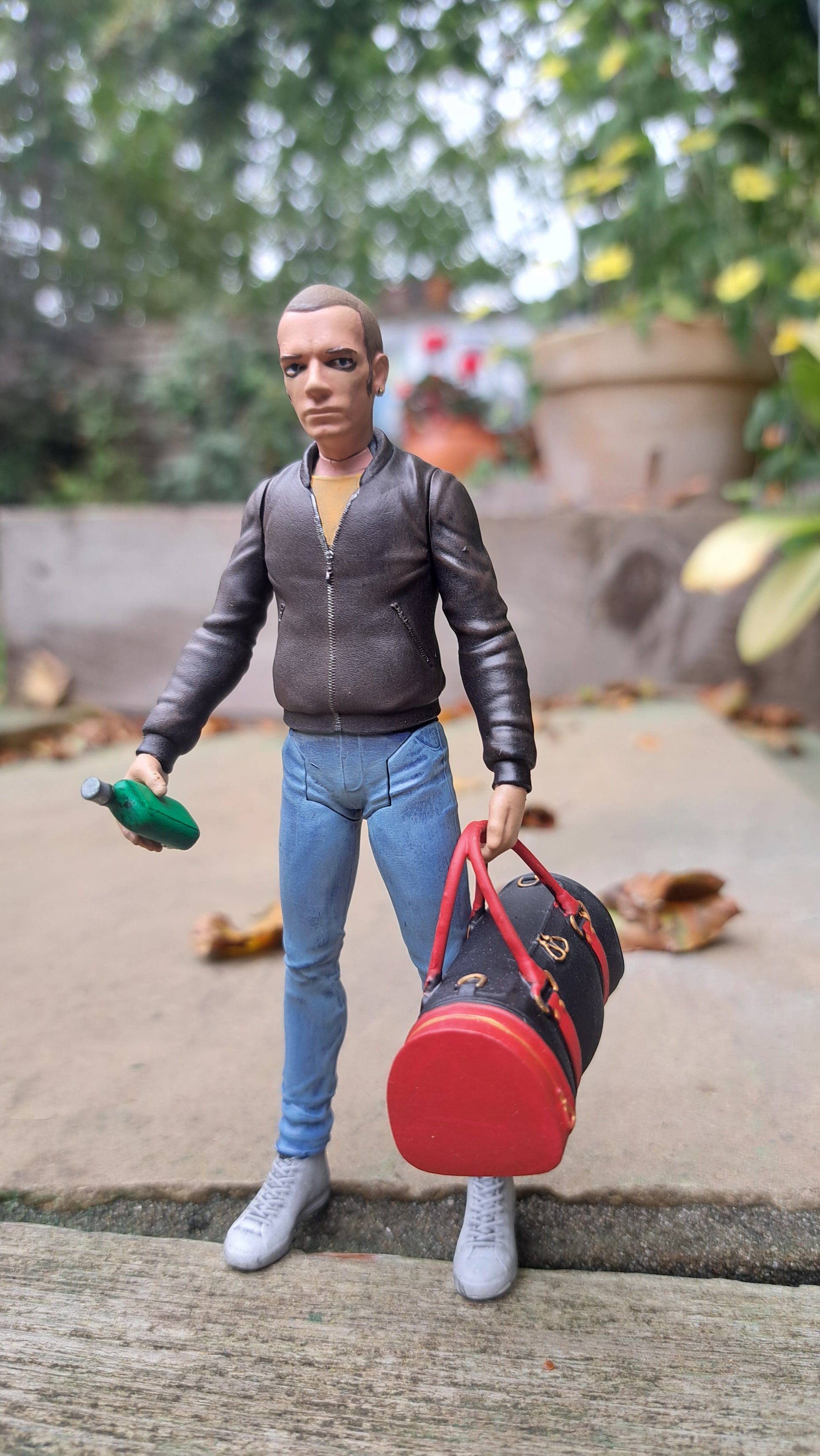 Features Renton (Ewan McGregor) in his signature jacket and jeans, meticulously hand-painted in quality acrylics and sealed with a protective matt vanish